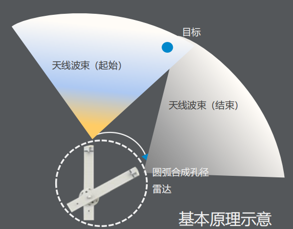 繞軸心旋轉(zhuǎn)的轉(zhuǎn)臂帶動頂端的寬波束天線掃過目標,進行圓弧合成孔徑高分辨率成像