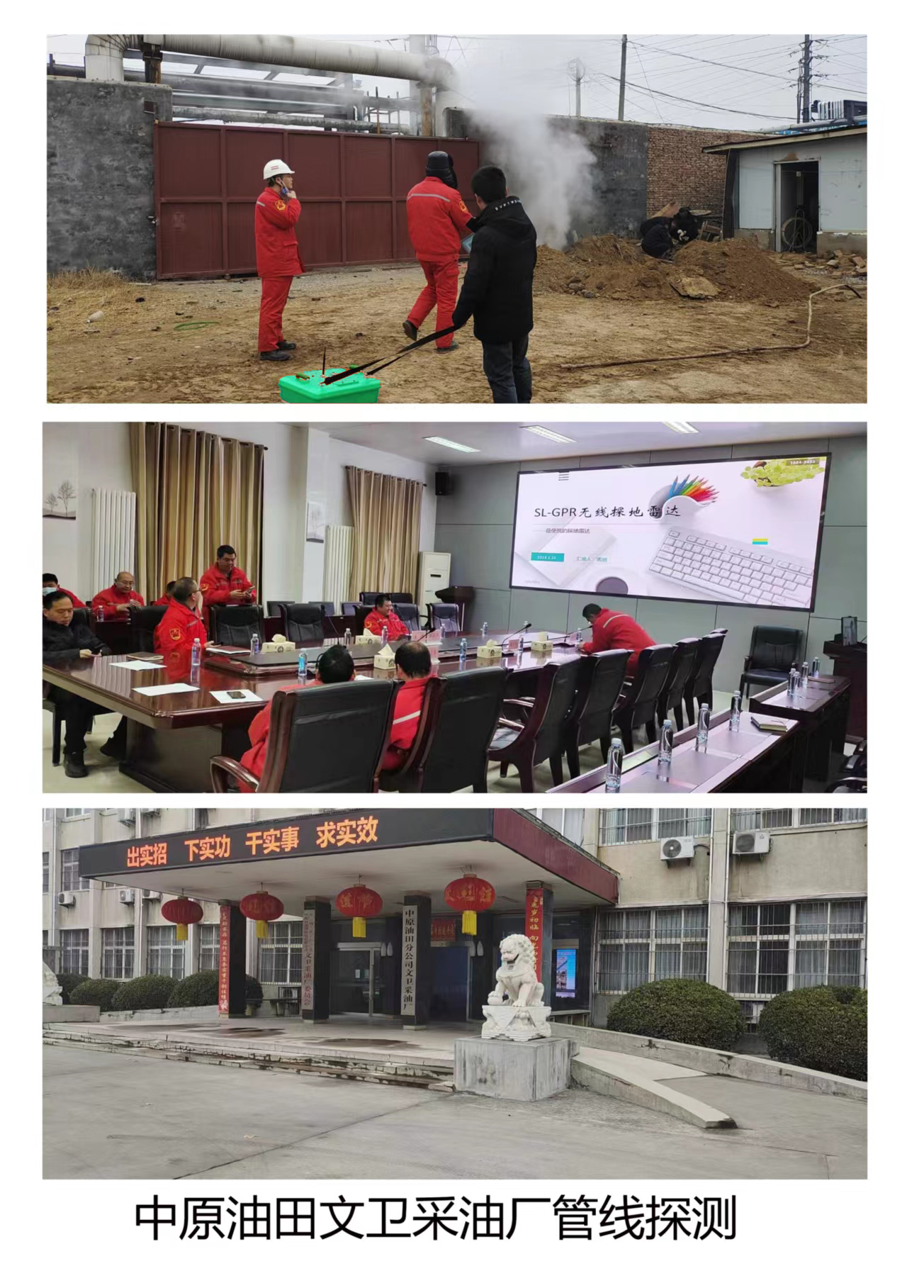 中原油田文衛(wèi)采油廠采用武漢世隆科技有限公司生產(chǎn)的SL-GPR無(wú)線探地雷達(dá)(暗管探測(cè)儀)進(jìn)行地下管線探測(cè)