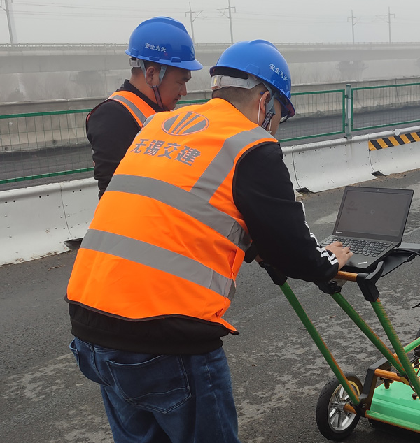武漢世隆科技SL-GPR無線探地雷達(dá)無錫交通建設(shè)工程集團(tuán)高速公路修復(fù)現(xiàn)場交付