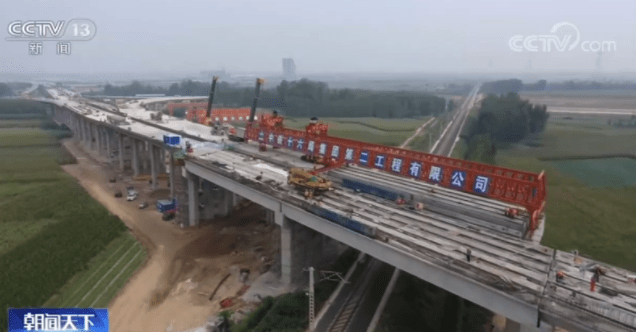 2020.9.26日凌晨,位于山東德州的德上高速與京臺高速連接線跨德大鐵路主橋,最后一片特長箱梁架設(shè)就位,這也是迄今為止架設(shè)的國內(nèi)最長公跨鐵箱梁。