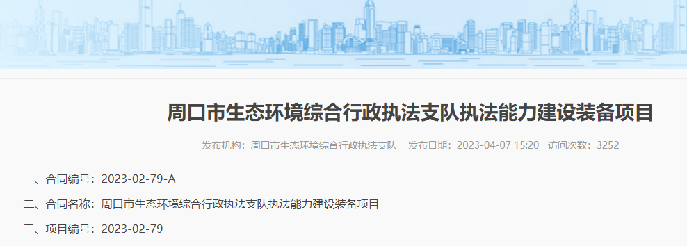 周口市生態(tài)環(huán)境綜合行政執(zhí)法支隊執(zhí)法能力建設(shè)裝備項目公開招標(biāo)項目中,采購我司研發(fā)和生產(chǎn)的SL-GPR無線探地雷達(暗管探測儀)1套