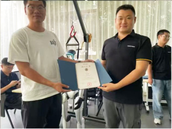 “課程既覆蓋了機(jī)器人運(yùn)動(dòng)控制算法這類硬核理論,也包含了設(shè)備現(xiàn)場調(diào)試、多場景適配的實(shí)操技巧,完全貼合我們服務(wù)客戶的實(shí)際需求。”羅工在談及培訓(xùn)收獲時(shí)表示,考核階段需獨(dú)立完成“人形機(jī)器人SDK動(dòng)作開發(fā)”“四足機(jī)器人復(fù)雜地形適應(yīng)性調(diào)試”兩項(xiàng)實(shí)操任務(wù),最終憑借扎實(shí)的技術(shù)積累與細(xì)致的操作,以優(yōu)異成績通過認(rèn)證。此次世隆科技工程師獲證,不僅是對(duì)個(gè)人技術(shù)能力的認(rèn)可,更意味著世隆科技作為宇樹科技重要合作伙伴,其整體技術(shù)服務(wù)水平達(dá)到宇樹官方認(rèn)證標(biāo)準(zhǔn),實(shí)現(xiàn)“個(gè)人能力+企業(yè)服務(wù)”的雙重突破。