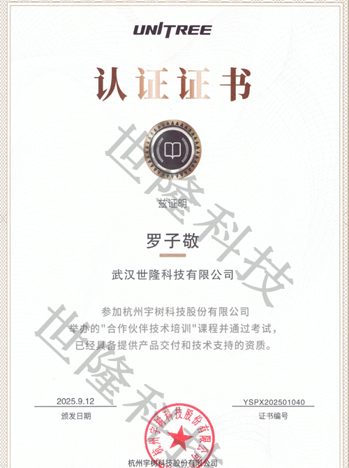 近日,武漢世隆科技技術(shù)團(tuán)隊(duì)迎來關(guān)鍵突破——公司核心技術(shù)骨干羅子敬通過全球機(jī)器人領(lǐng)域領(lǐng)軍企業(yè)——杭州宇樹科技股份有限公司(UNITREE)的“合作伙伴技術(shù)培訓(xùn)”課程及嚴(yán)苛考核,成功斬獲宇樹科技官方認(rèn)證證書。這一成果不僅標(biāo)志著世隆科技在機(jī)器人產(chǎn)品交付與技術(shù)服務(wù)領(lǐng)域的專業(yè)能力獲權(quán)威背書,更夯實(shí)了其在機(jī)器人應(yīng)用服務(wù)賽道的綜合競爭力,為客戶提供更優(yōu)質(zhì)的技術(shù)支持奠定堅(jiān)實(shí)基礎(chǔ)。